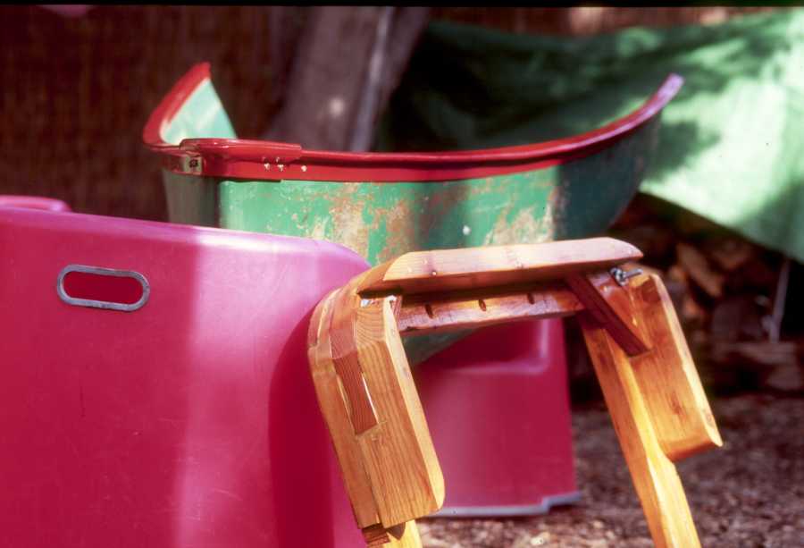 - Base and Seat Frame: Old 2x4s salvaged from a remodeling job in Berkeley and acquired through Craig’s List