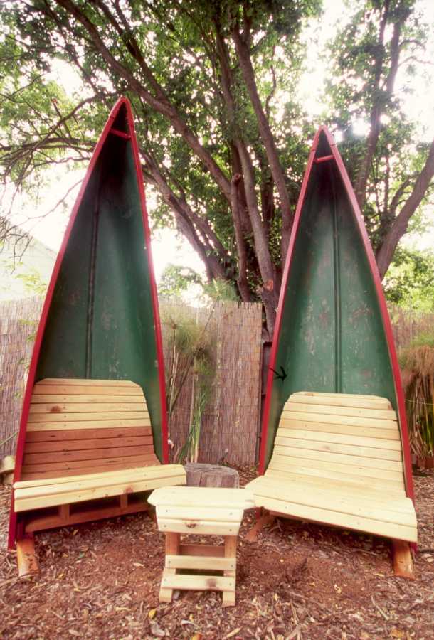 I said “If you really want to get rid of it, I’ll cut it in half and make chairs out of it”. Peter agreed and that is what I did. This is the story of making the Canoe Chairs.